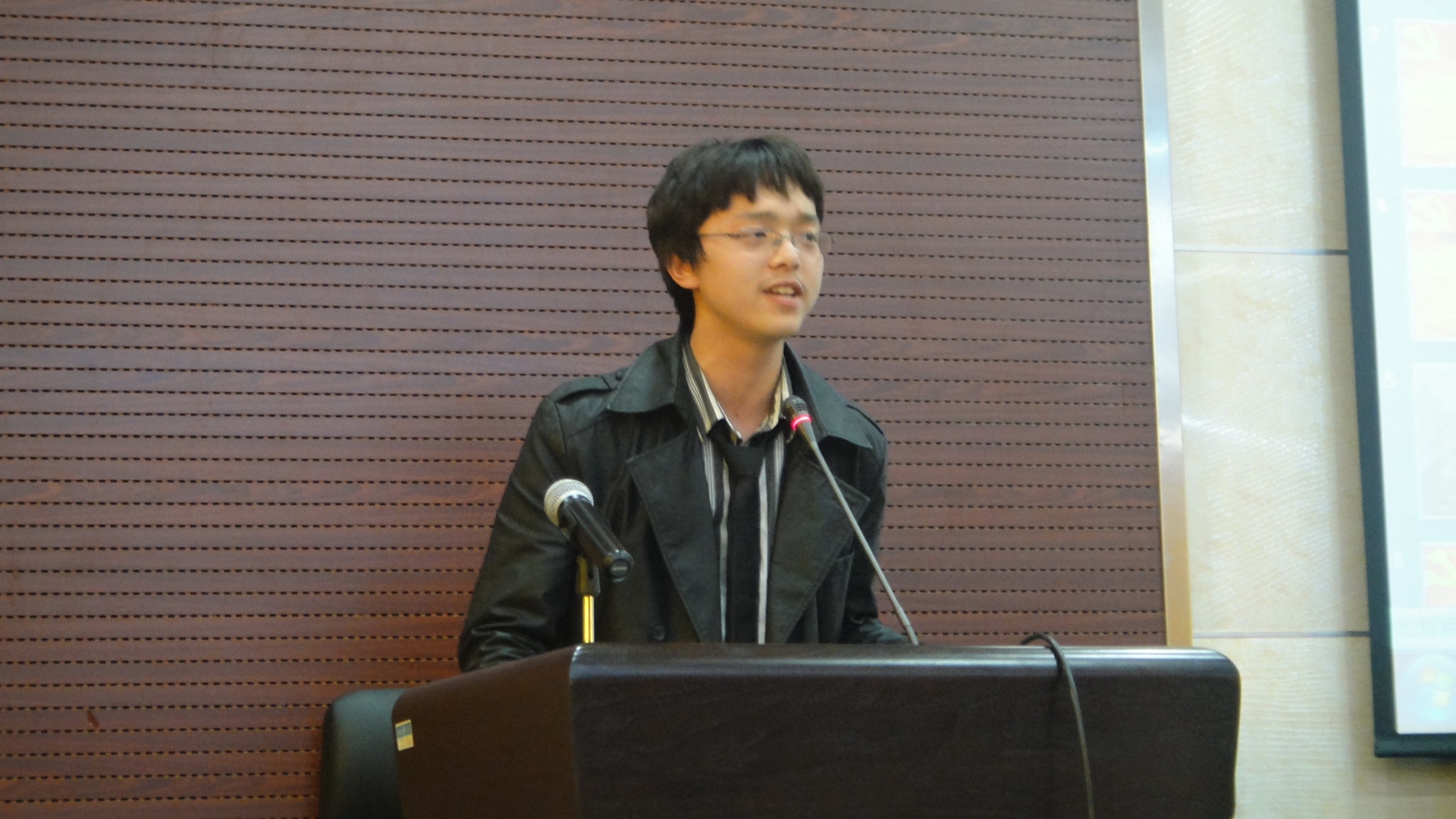 2011年5月5日晚,由太阳集团tyc33455官网党委学工部主办的庆祝建党九十周年系列活动之“恰同学少年 忆峥嵘岁月”征文演讲比赛总决赛在人文学院报告厅隆重举行。来自于各个院系的数名选手在初赛的竞争中脱颖而出,在赛场上产开激烈角逐。最后,太阳集团官网2010级本科生陈冕表现出色,以题为《不朽红颜》的演讲赢得全场掌声并最终获得了一等奖,王蓓琪同学获得了三等奖。图为陈冕同学在比赛现场。