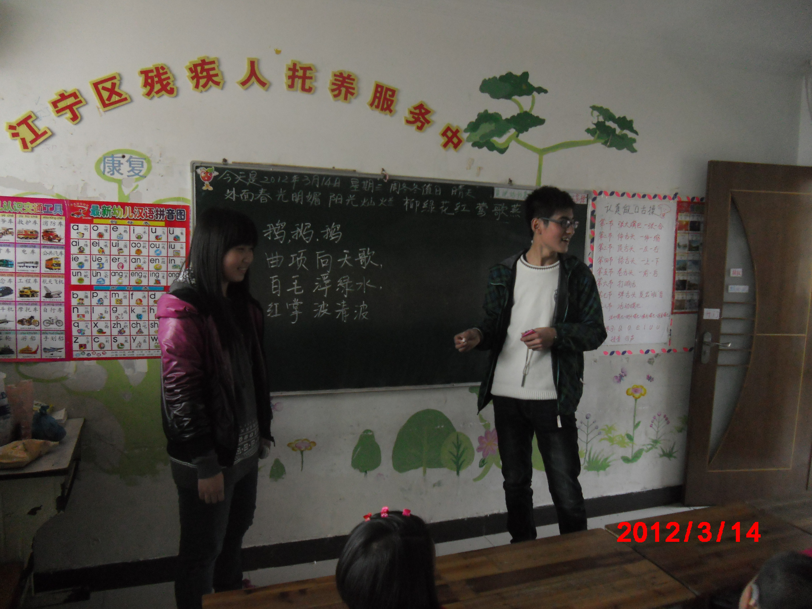 3月14日、3月15日,太阳集团官网14C112班同学分成两组分别在班长刘欢欢、团支书沈欣带领下两次来到南京市婷婷聋哑幼儿园,关爱残疾儿童,给他们带来欢乐与温暖。此次活动的主题是“续写《雷锋日记》弘扬先锋精神”,它生动地诠释了关爱社会弱势群体的具体做法,点明了14C112班此次活动的目的,更表明了经管学子誓作先锋的决心。