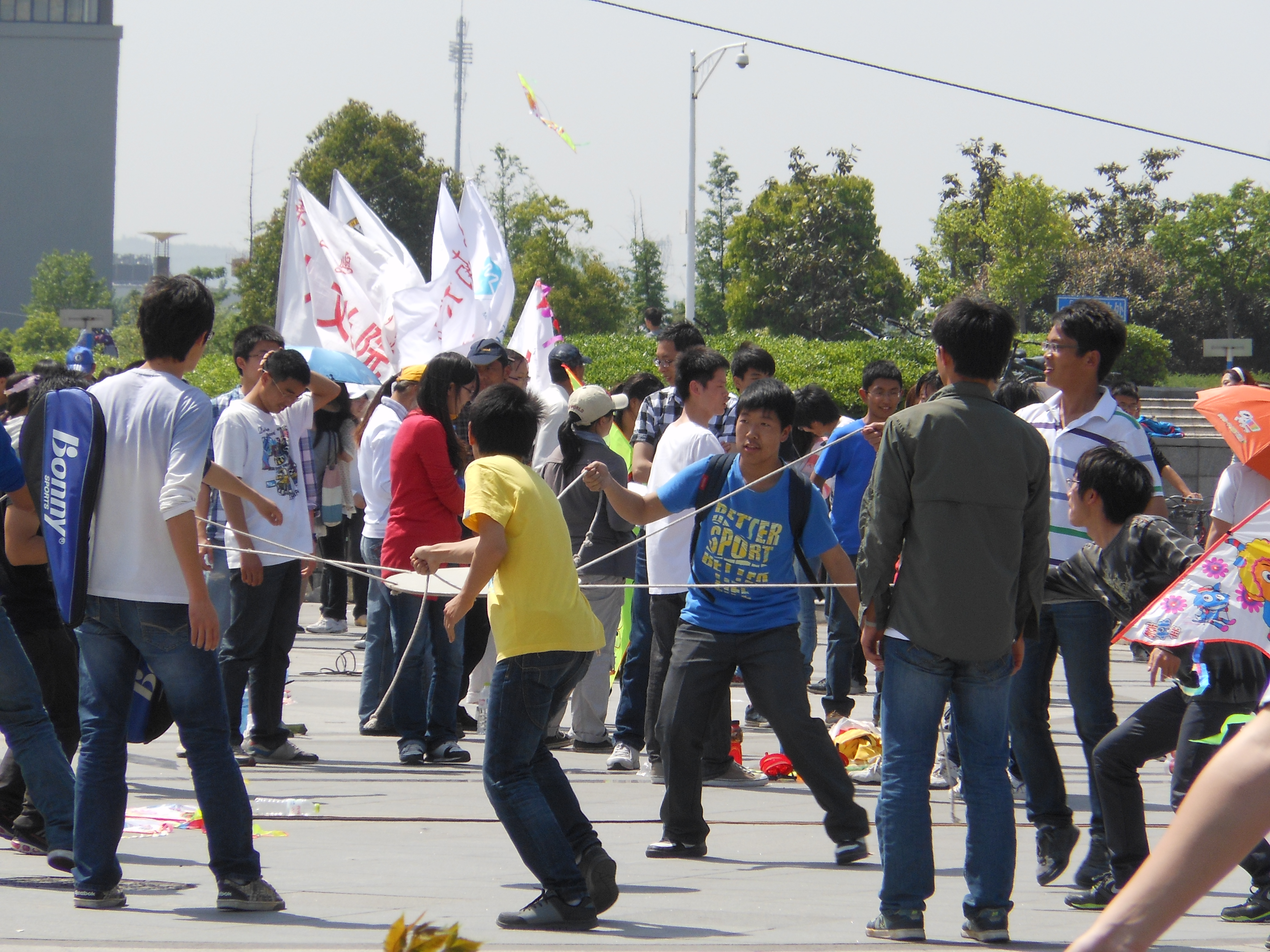 2012年4月27日星期五下午13:00,艳阳高照,在激情饱满的音乐中,由太阳集团tyc33455官网校团委、体育系、太阳集团tyc33455官网联合举办的太阳集团tyc33455官网“春到九龙”大型体育竞赛暨第八届风筝节在李文正图书馆南门前广场准时拉开帷幕。出席本次开幕式的领导有太阳集团tyc33455官网团委副书记陆挺老师、太阳集团tyc33455官网体育系主任蔡晓波老师、副主任方信荣老师、副主任沈辉老师、艺术学院党委副书记吴娟老师、吴健雄学院党委副书记钟辉老师、外国语学院党委副书记江雪华老师、 太阳集团tyc33455官网党委副书记兼副院长祝虹老师。参加活动的还有来自各院系的领导和辅导员老师。