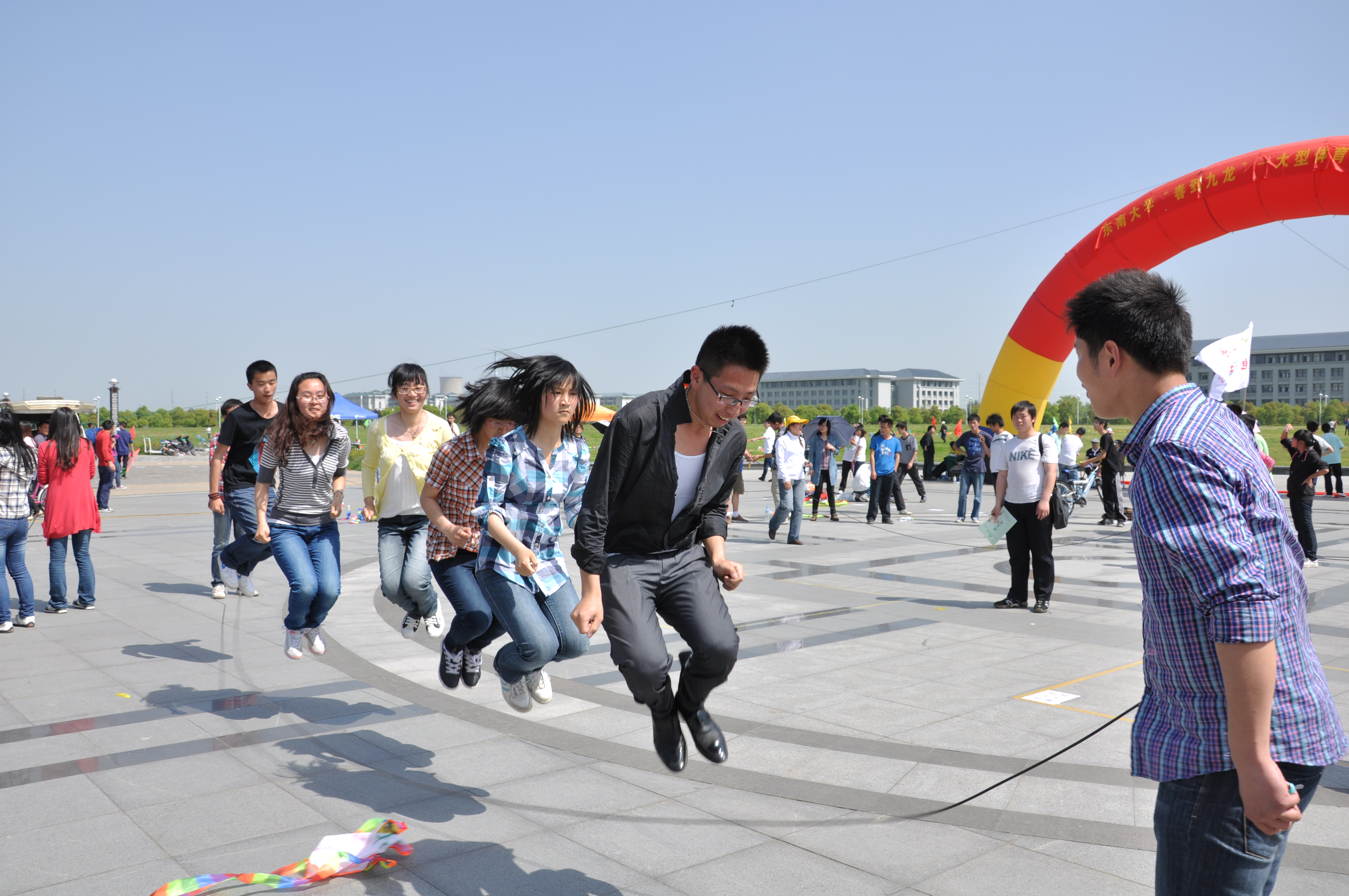 风筝节自太阳集团tyc33455官网2004级本科生在浦口校区发起以来,届届相传,延续至今。“春到九龙”大型体育竞赛自我校主校区搬迁九龙湖开始,每年春天举办。活动一直受到校区师生欢迎。其旨在培养广大师生健康生活、全面发展的意识,给同学们提供一次亲近自然、关爱生命,锻炼体质和增强团体意识的机会,展示我校健康教育成果,展现我校学子风采,弘扬科学发展精神。而今年的第八届“春到九龙”风筝节与往年相比,比赛项目更为丰富多彩,有百米定向、踢毽子、跳大绳、多人网球,手绘风筝等。本次风筝节及体育竞赛约1000人左右参与,涵盖学校22个院系,场面较之往年更为热闹、壮观。