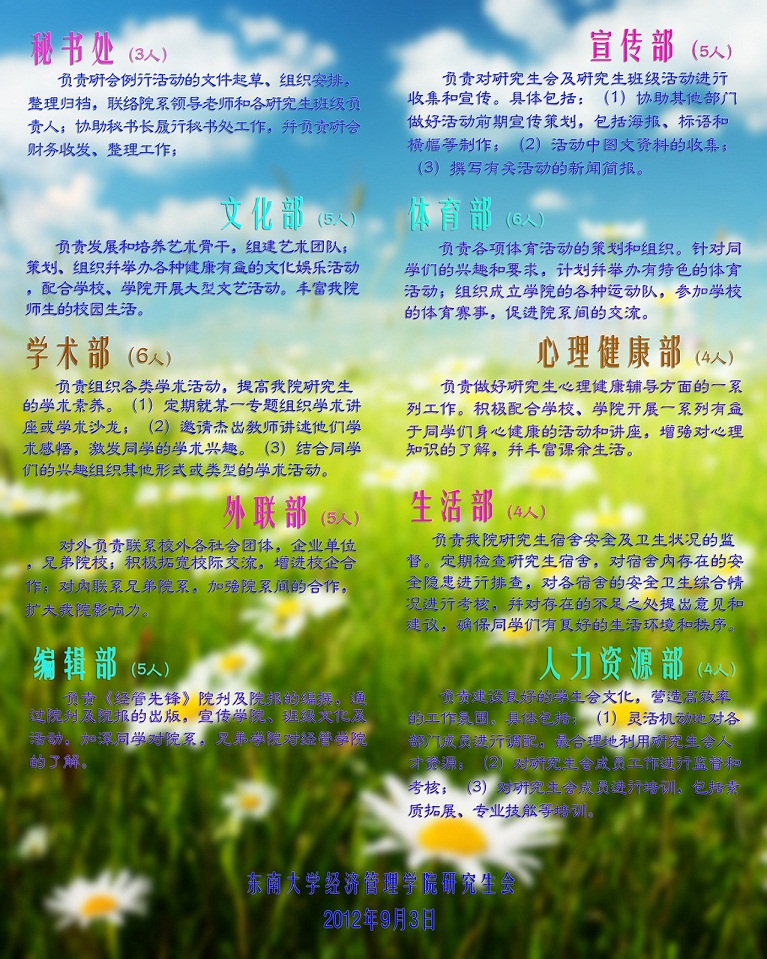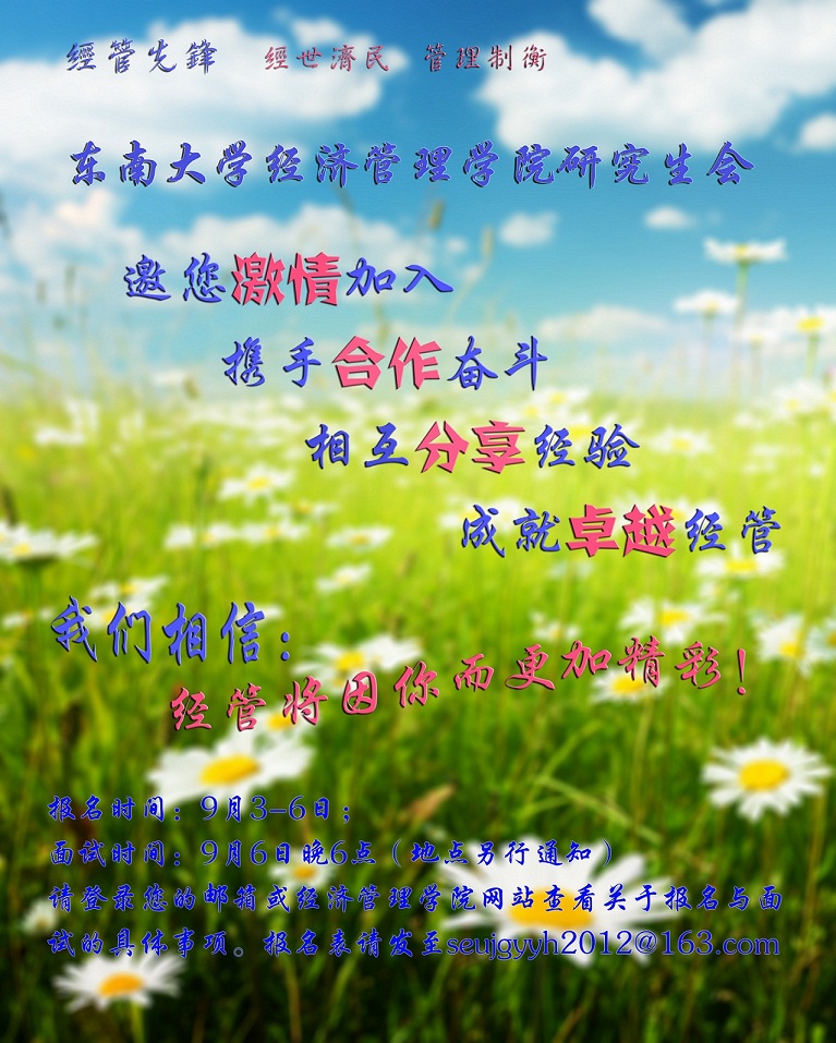 首先,代表经管院研究生会欢迎您加入东大经管这个大家庭,