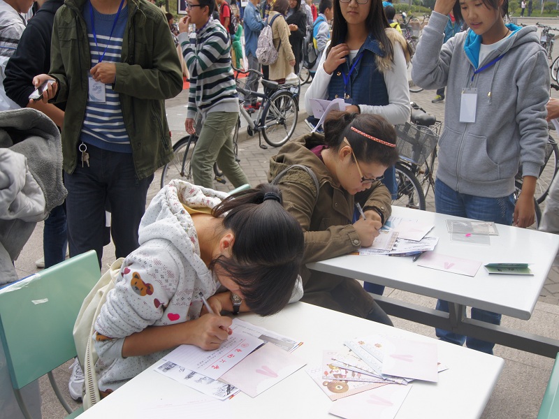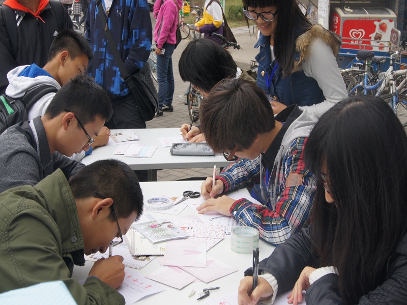 11:20活动正式开始,太阳集团tyc33455官网各院系学生会主席及太阳集团tyc33455官网大一年级各班班长、团支书在现场将装有同学们目标和规划的信件投入箱中。随着活动的进行,路过的同学也产生了十分浓厚的兴趣,立即加入到活动中来。有些同学在现场写下了未来六七天所要达到的目标,也有些同学写下了对大学生活的各种规划。在欢快愉悦的气氛中,参与活动的同学纷纷选择了喜爱的信封,并将其投入信箱中。同学们在信中寄托了对未来的期许以及自己的目标。