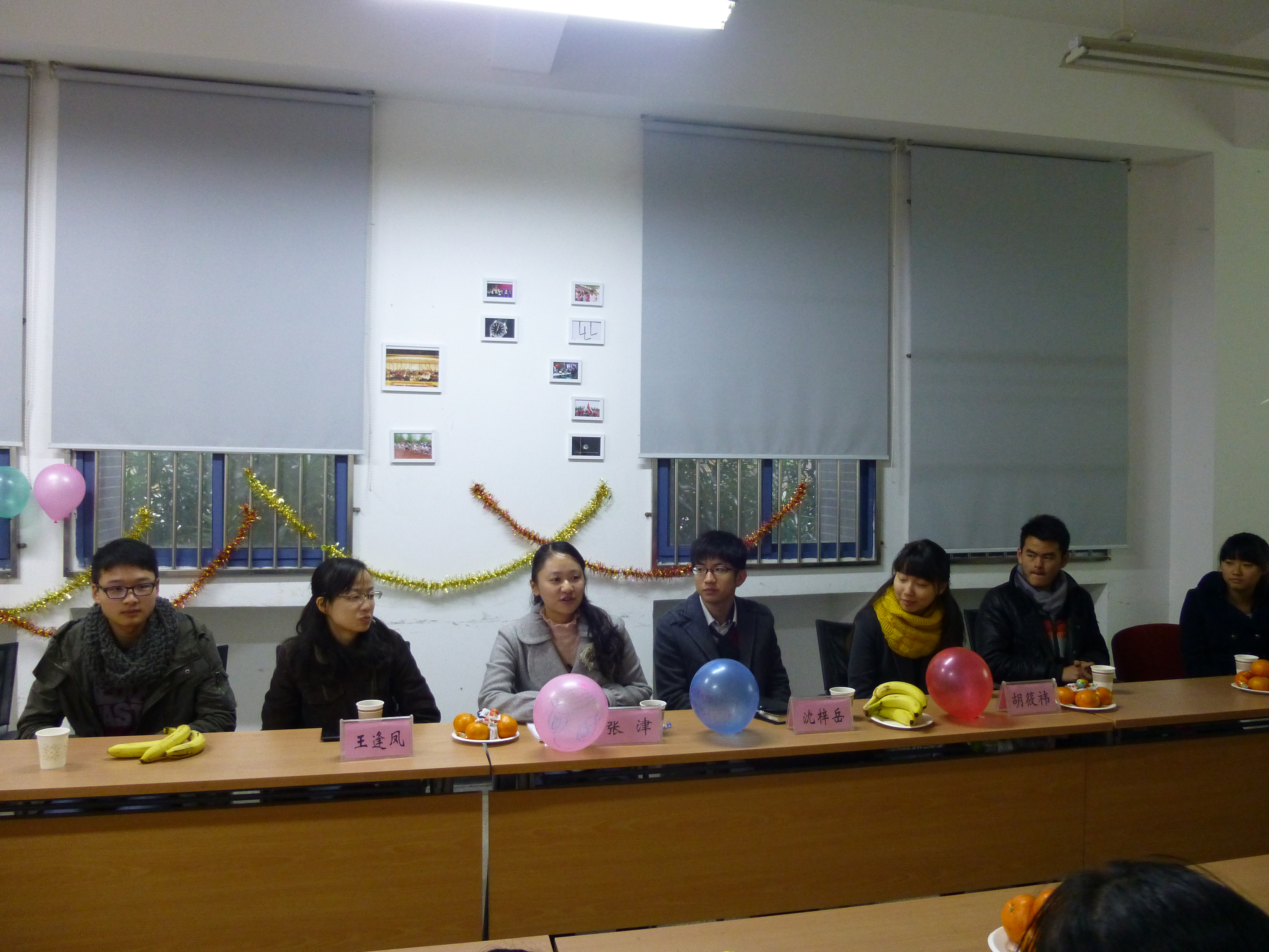20121121日上午,在经管楼B102举行了一场小型的经验交流会,研究生辅导员兼班主任王逢凤老师,院研究生会主席张津、院学生会主席沈梓岳、大四学生代表胡筱祎三位学长学姐及14C126班全体同学、出席了此次座谈会。
