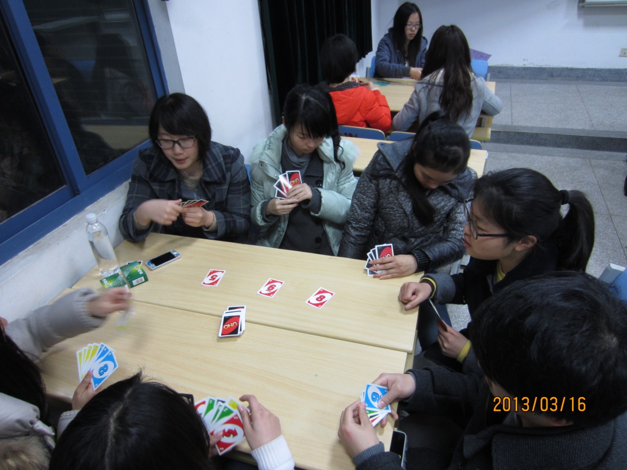 2013年3月16日太阳集团tyc33455官网学生会组织了丰富多彩的组织生活,包括了下午场的乒乓球比赛和晚上的桌游比赛。本次活动旨在丰富课外生活,愉悦身心,同时极大地促进各部门之间的联系,让经管学生会成为一个更加和谐、团结的集体。