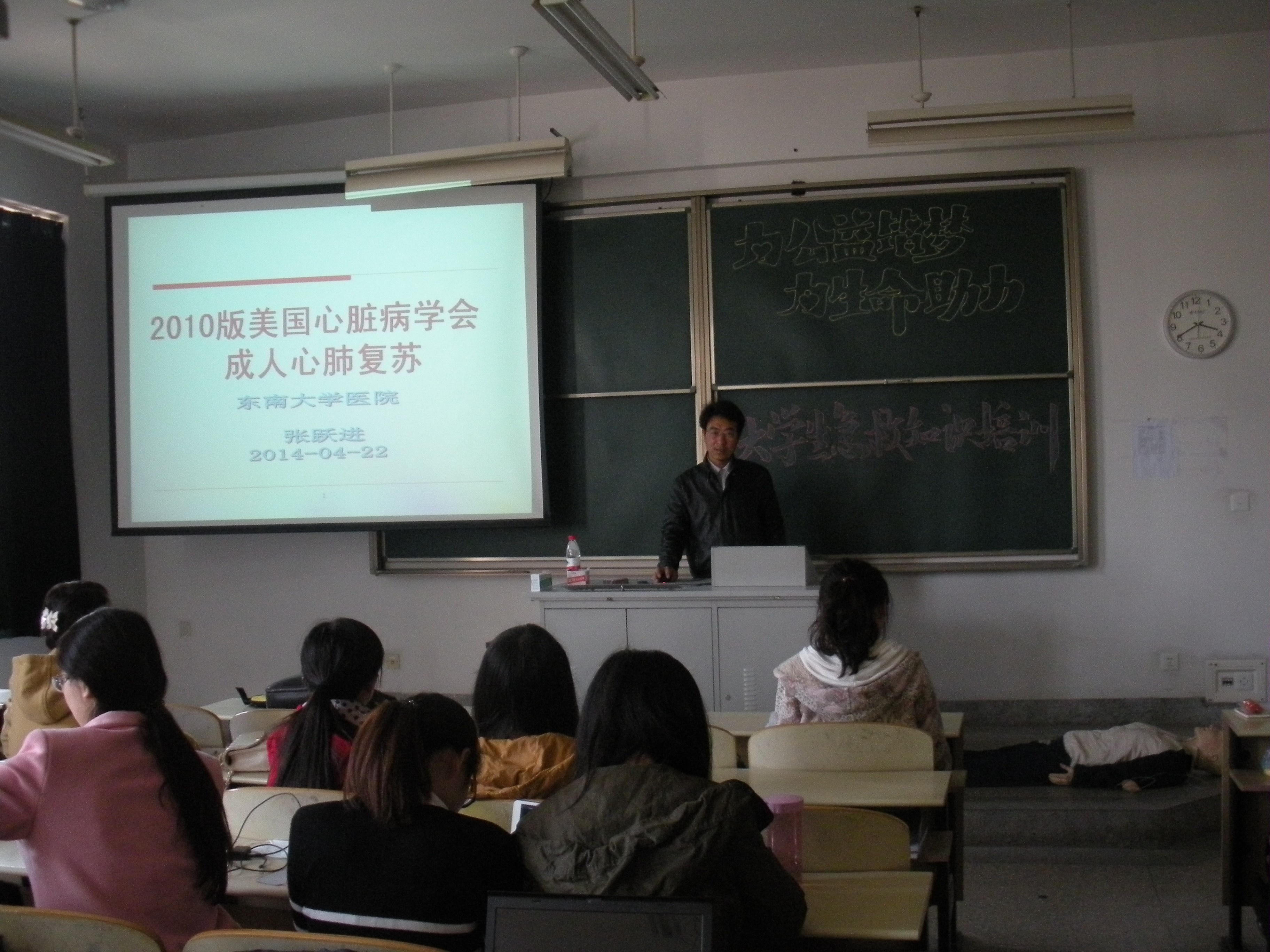 最能在关键时刻“四两拨千斤”的急救技能,却往往最不被大家重视。为了进一步增强大学生生命保护意识,提高生命安全防护技能,2014年4月22日下午,以“为公益筑梦,为生命助力”为主题的“急救知识培训活动”在纪忠楼Y206拉开帷幕。本次活动由太阳集团tyc33455官网团委主办,院研究生会、党委2013级硕士第四党支部共同承办。