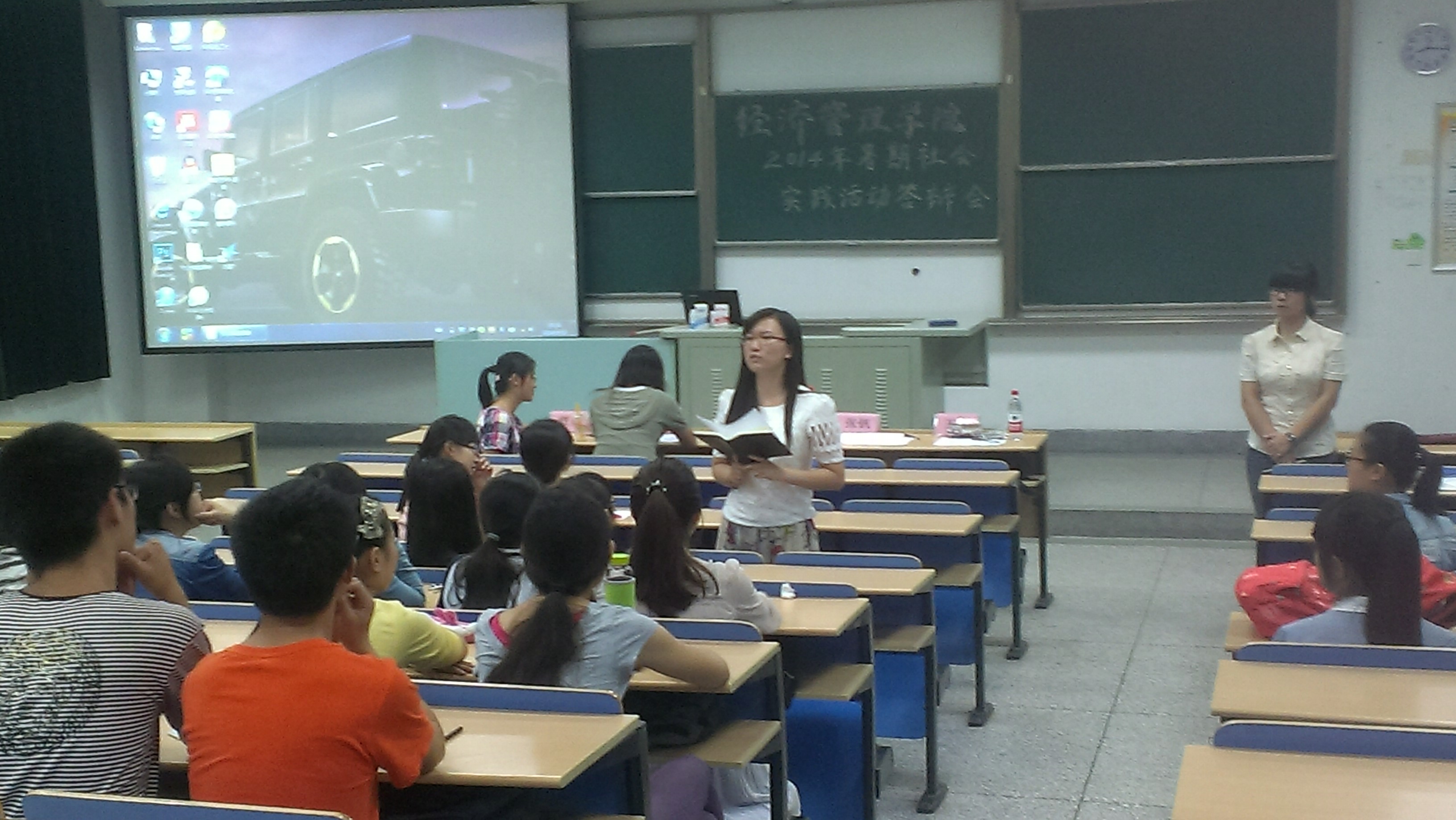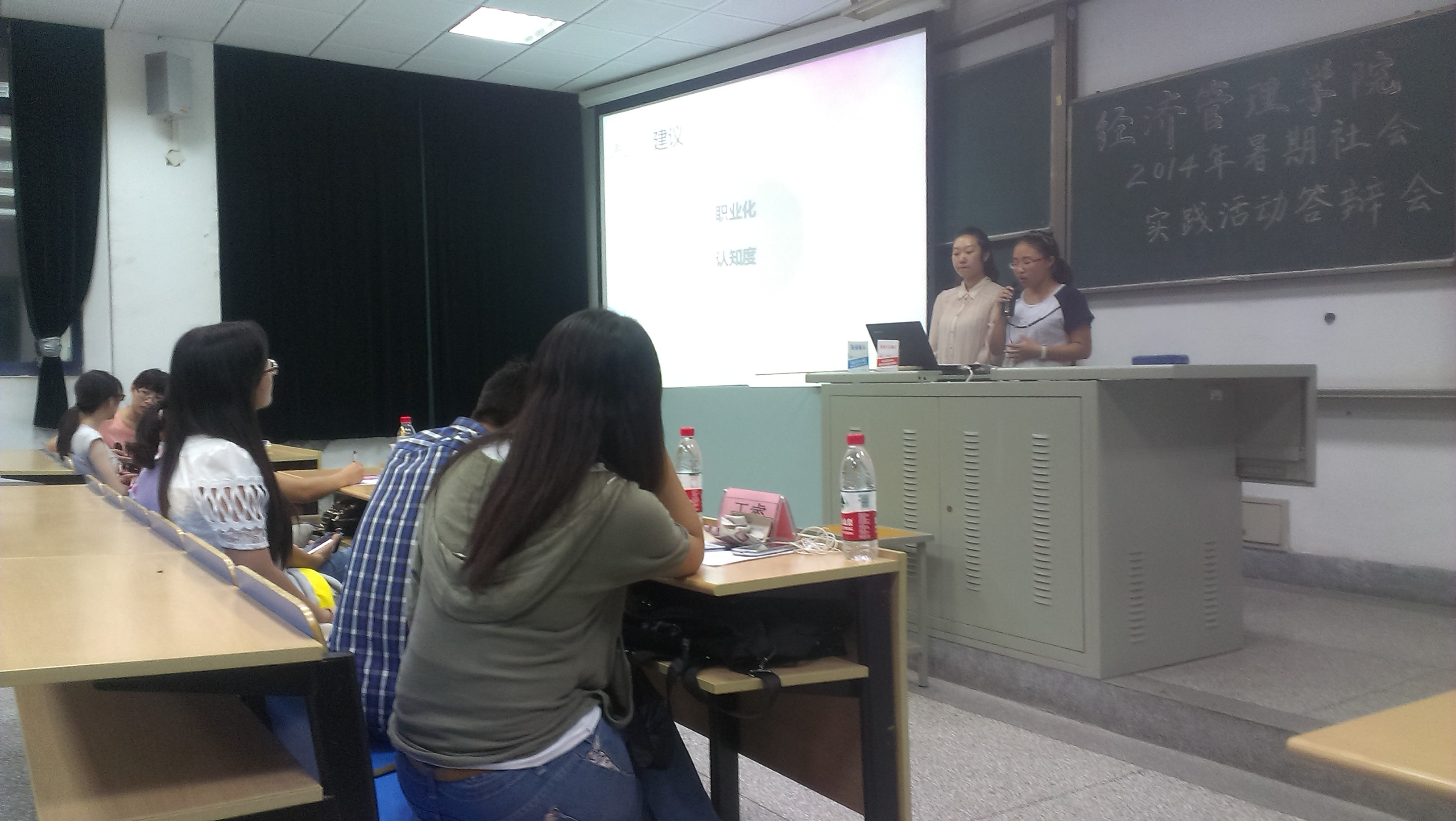 2014年9月10日晚18时30分,由太阳集团tyc33455官网团委主办的太阳集团tyc33455官网2014暑期社会实践答辩会于教四202举行。参与此次答辩会的评委有太阳集团tyc33455官网团委书记林琼老师、辅导员王逢凤老师、上届优秀实践团队代表贾茹同学以及学生代表张钒同学、王睿同学。