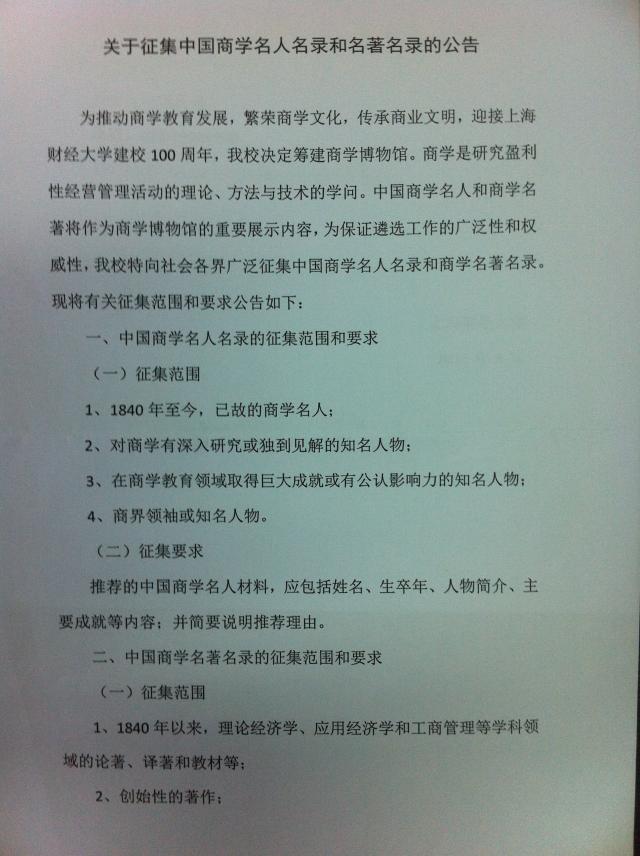 为了书写中国百年商学教育历史,启示现代高等财经教育发展,也为迎接上海财经大学百年校庆,该校决定筹建商学博物馆,现向我校征集相关材料。根据太阳集团tyc33455官网档案馆提供的信息,上海财经大学的前身是1921年太阳集团tyc33455官网在上海分设的上海商科大学,历史源自我校。
