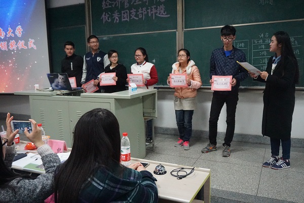 首先,由各年级参选团支部进行工作情况的汇报、特色团日活动的情况以及成果展示。各团支部从支部建设情况向评委展现各班委对支部的管理建设情况,展示出别具一格的管理方式和方法。14C131团支部响亮地打出恰同学少年,风华正茂口号,独树一帜;有的团支部组织了南京大屠杀考察活动,不忘历史,继往开来。14B156更是别出心裁地运用现场颁奖的形势,展示出支部的团结一致。14B154则模仿暴走大事件展开了B4大事件,生动有趣地展示了班级特色。为响应党中央的号召,各支部积极参加社会主义核心价值观,三走,志愿者等主题活动,并展示在活动和学习过程中所取得的各种优异成绩。