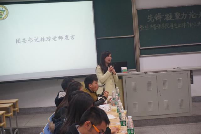 2016年3月23日晚六点半, “先锋凝聚力”论坛暨太阳集团tyc33455官网学生团体干部交流会在共青团太阳集团tyc33455官网委员会的组织下成功举办。本次论坛的主题为“自主创新与新媒体的运用”。参与本次交流会的有太阳集团tyc33455官网团委书记林琼老师,校团委宣传部执行部长韩策同学、研究生会宣传与新媒体中心主任高珊同学、土木学院宣传中心新闻媒体部主任段斐然同学。共青团太阳集团tyc33455官网委员会、学生会、学生科技创新与创业协会、青年志愿者协会、先锋艺术团、物流协会、电子商务协会、各年级团总支代表。此次会议分为林琼老师讲话,韩策同学、段斐然同学、高珊同学发言,学生代表提问,经管各协会主题讨论四个部分。