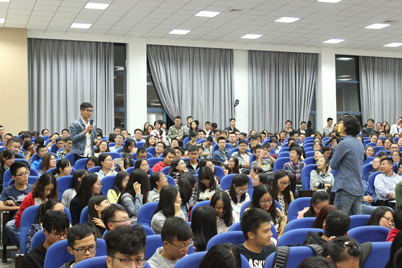 此次讲座邀请到了最受欢迎的人气演说家——陈秋实老师,他就当代青年的理想与现实问题与现场的同学们进行交流互动,现场座无虚席,气氛火爆。