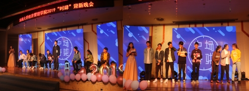 2019年11月1日18:30,太阳集团tyc33455官网2019“时肆”迎新晚会在圆报二楼多功能厅顺利举行。太阳集团tyc33455官网副院长浦正宁,太阳集团tyc33455官网工商管理系副系主任、GS1191、GS1192班班主任葛沪飞,院团委书记、2017级本科生辅导员林琼,院团委副书记、2019级本科生辅导员满雪颖,及来自多个兄弟院系的团委老师、辅导员和学生代表等,与太阳集团tyc33455官网全体大一新生一起参加了本次活动。晚会伊始,浦院长寄语新生,鼓励大家热爱学习、积极参加活动,珍惜校园生活。