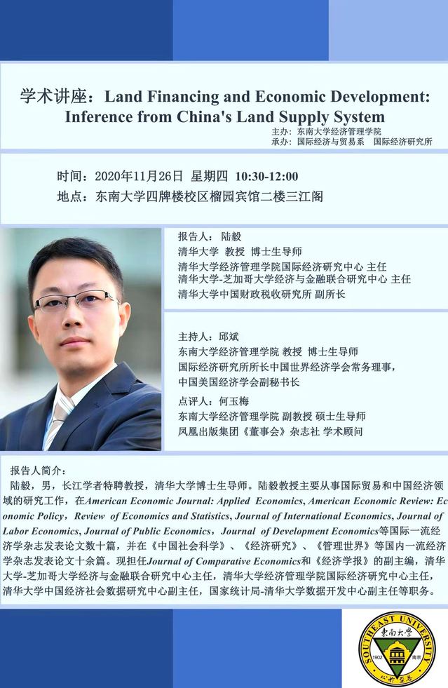 学术前沿讲座—Land Financing and Economic Development: Inference from China's Land Supply System