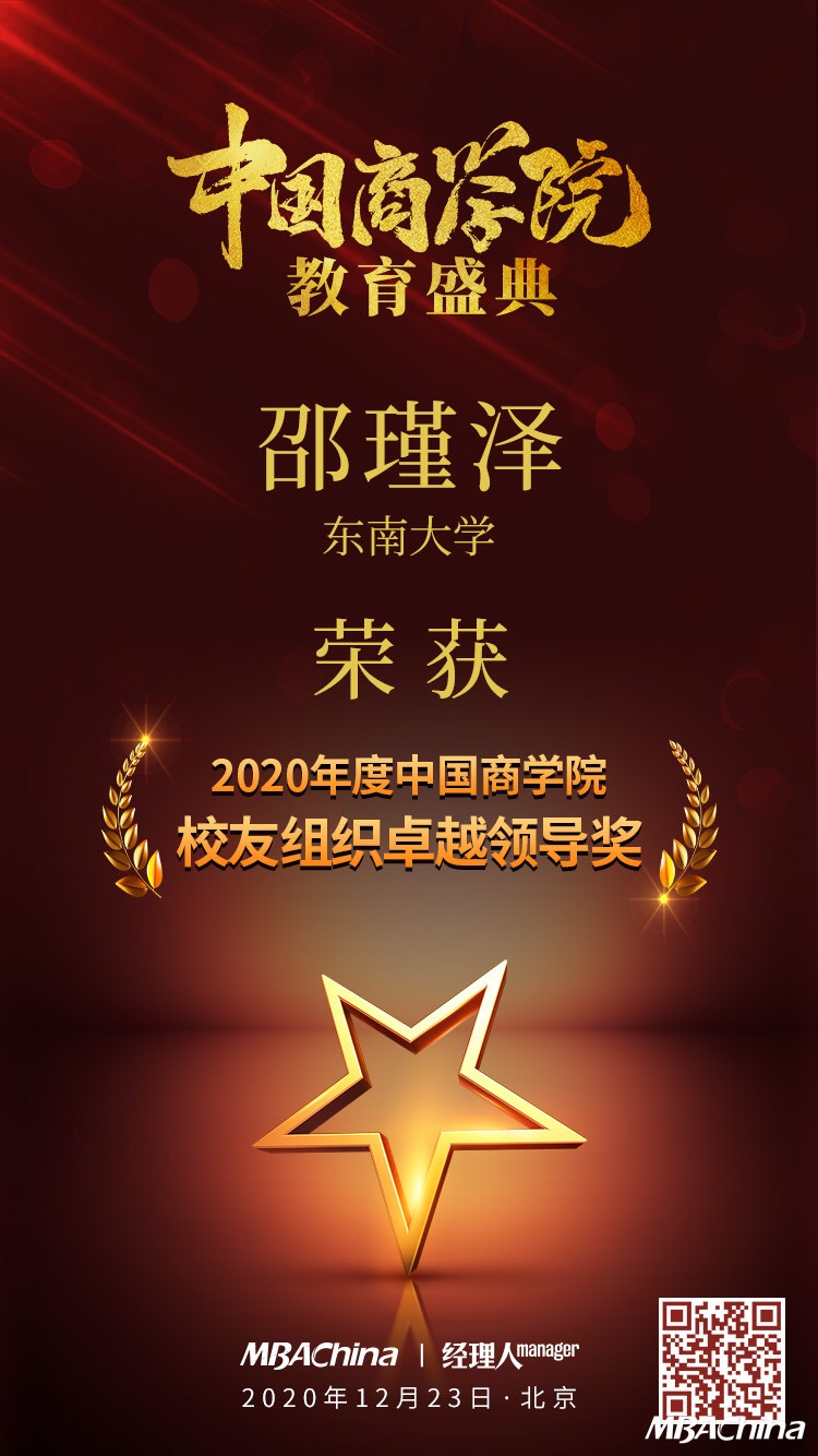 太阳集团tyc33455官网MBA校友邵瑾泽荣获“2020年度中国商学院校友组织卓越领导奖”。邵瑾泽为太阳集团tyc33455官网2018届MBA毕业生,曾任太阳集团tyc33455官网第十一届MBA联合会副主席,现任太阳集团tyc33455官网MBA创投俱乐部副会长,江苏高校创投俱乐部联席秘书长。就职南京纳才企业管理咨询有限公司总经理,在猎头顾问及人力资源管理等领域取得了突出成绩。邵瑾泽校友的获奖,是本次年度盛典对我校校友成就的一种肯定和鞭策。