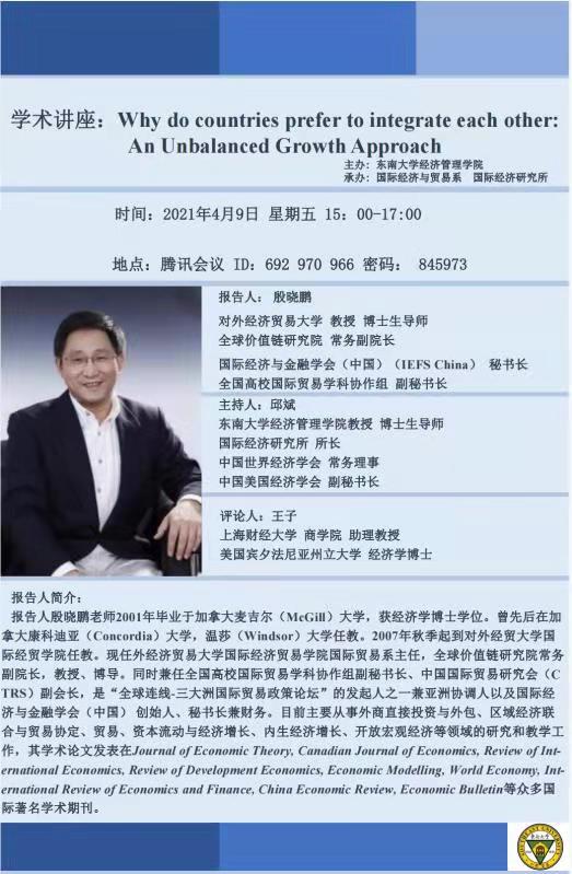 学术前沿讲座--Why do countries prefer to integrate each other: An Unbalanced Growth Approach