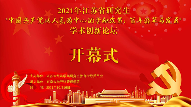 图1 2021年江苏省研究生“中国共产党以人民为中心的金融政策:百年沿革与发展”学术创新论坛开幕式