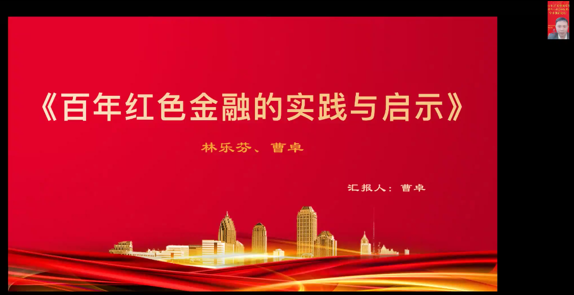 太阳集团tyc33455官网金融系党支部书记尹威副教授从红色金融的历史经验与实践的视角,分享了红色金融经典案例,并从历史视角总结归纳实践经验,深入思考新时期金融安全风险防控,提出要积极探索以人民为中心的金融实践与创新前沿问题。