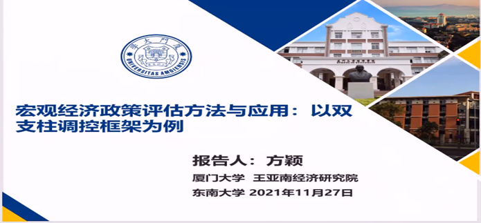 简短开幕式后,大会进入嘉宾主旨演讲环节。厦门大学方颖教授以“货币政策和宏观审慎双支柱调控框架的政策效应:基于宏观经济政策评估视角”为主题,以Rubin因果效应框架量化评估2007-2017年我国货币政策和宏观审慎双支柱调控对经济增长、物价稳定及金融稳定的影响。