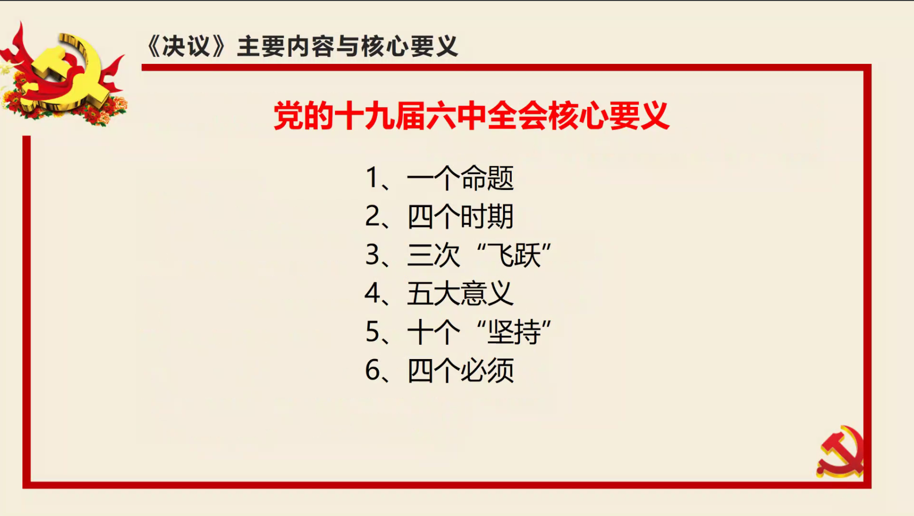 其次,刘晓星老师讲述了《中共中央关于党的百年奋斗重大成就和历史经验的决议》的主要内容与核心要义,从一个命题、“四个历史时期、四个主要任务、四个伟大成就、四个庄严宣告”、马克思主义中国化的三次飞跃、五大历史意义、十个坚持、四个“必须”六个方面展开,全面系统地带领大家深入学习党的十九届六中全会的内容。