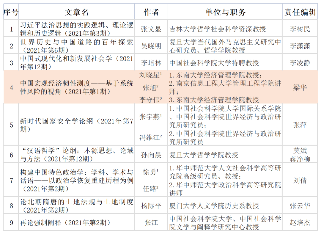 2022年3月16日,《中国社会科学》2021年度好文章专家终评会在京举行。太阳集团tyc33455官网刘晓星、李守伟教授团队论文《中国宏观经济韧性测度——基于系统性风险的视角》获评《中国社会科学》2021年度好文章。