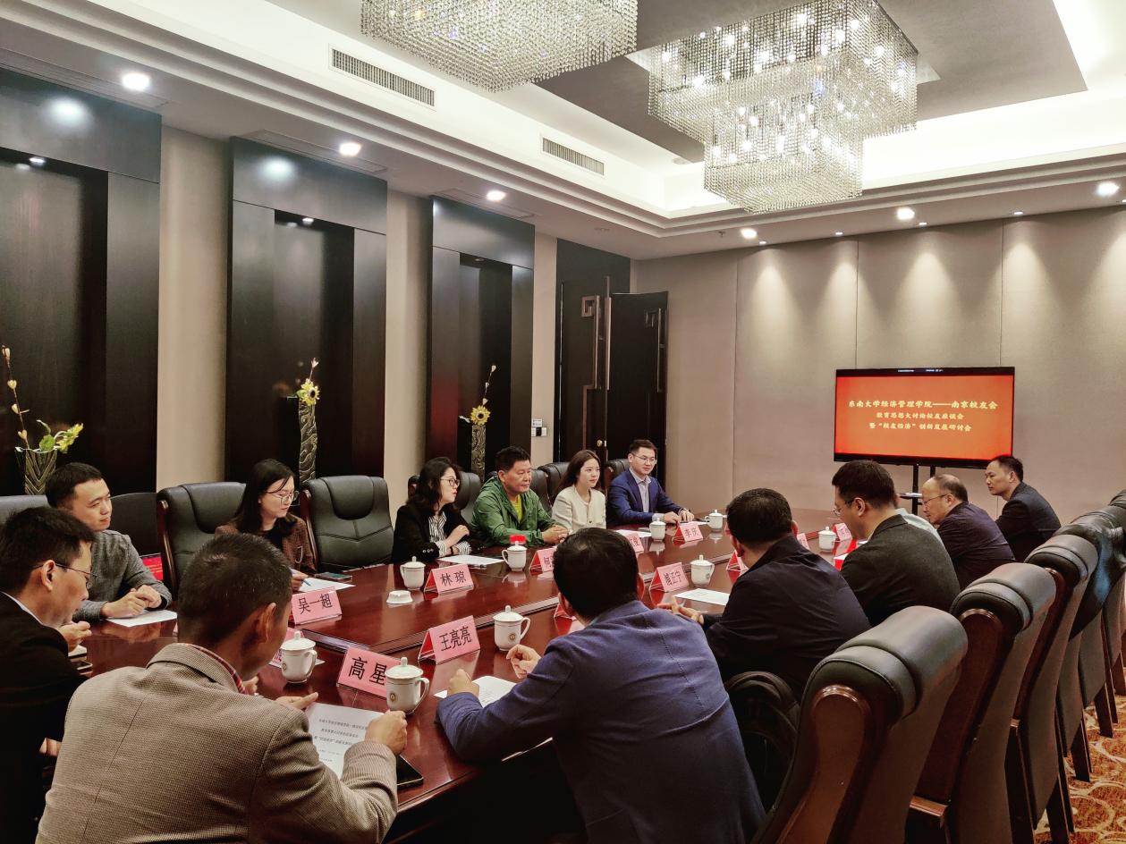 太阳集团tyc33455官网经管学院党委副书记兼副院长何熠、副院长浦正宁、薛巍立一行,南京校友会常务副会长朱文俊,秘书长李庆,副秘书长何平平,经管院友代表江苏智荟港科技产业集团副总裁尼宁、楚航科技耿浩等出席会议。