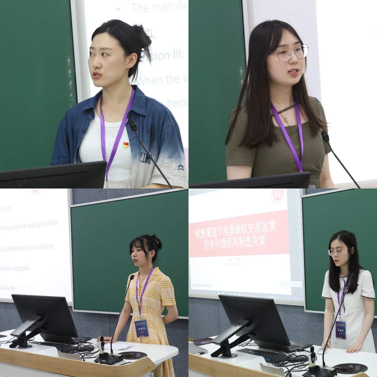 学术论坛汇报分为四组。首先,“运营与绿色供应链管理”分组的汇报在李敏教授的主持下进行,裴益莹、吴梦楚、刘燕萍、陈婉莹四位博士生分别从研究背景、研究思路、模型构建等方面对自己研究工作进行了汇报。南京大学博士生裴益莹分享了研究工作《Manufacturer Encroachment and Promotional Effort on a Hybrid Online Retailing Platform》,她建立了一个制造商和零售平台的博弈论模型,以探讨混合零售平台的促销努力决策和制造商的侵占决策之间的相互作用。太阳集团tyc33455官网博士生吴梦楚汇报了研究内容《Buy Online and Return Instore in Omnichannel Operations》,她提出为消费者提供更好的购物和退货体验,开发了一个程式化模型来评估全渠道退货合作对消费者行为和渠道盈利能力的影响。福州大学博士生刘燕萍分享了研究工作《Optimal Production and Maintenance Strategies for Manufacturing/Remanufacturing Leasing System Considering Uncertain Quality and Carbon Emission》,她通过考虑报废租赁产品的质量水平对制造和再制造设备以及再制造率的影响,为研究制造/再制造系统的生产和维护决策而建立了以出租人利润最大化为目标的生产维护决策模型。福州大学博士生陈婉莹汇报了研究内容《租售渠道下考虑碳权交易政策的专利授权再制造决策》,她研究了CTP下租赁渠道的专利授权再制造策略,构建了由OEM和TPR组成的供应链,进一步分析了CTP对OEM和TPR决策的影响并考虑了信息不对称情况下OEM和TPR的生产策略及利润变化。