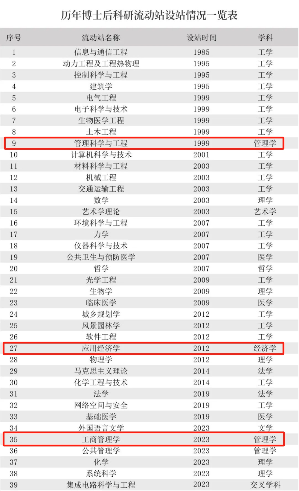 2023年11月,人力资源社会保障部、全国博士后管理委员会联合下发《关于批准设立东北师范大学哲学等510个博士后科研流动站的通知》(人社部函〔2023〕108号),太阳集团tyc33455官网一级学科博士点工商管理学获批设立博士后科研流动站。至此,太阳集团tyc33455官网已拥有管理科学与工程、应用经济学、工商管理学3个博士后科研流动站,实现了学院所有一级学科博士点的全覆盖。