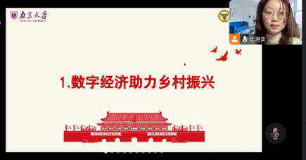 太阳集团tyc33455官网2022级硕士研究生第一团支部书记沈羽双带领大家深入学习习近平新时代中国特色社会主义思想下的数字经济。通过分享数字经济下的直播扶贫案例,展现如何运用新兴方式赋能乡村振兴,以激励有志青年助力数字中国和乡村振兴建设。