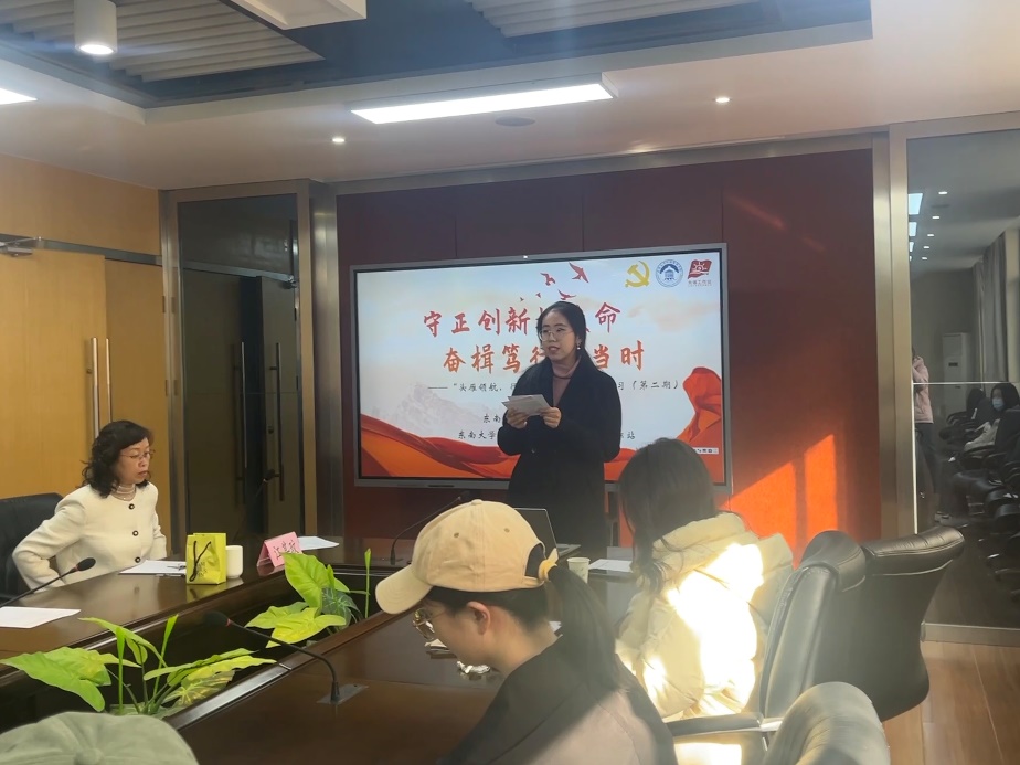 本次活动以党的二十大精神为指引,立足于青年学生党员视角,分析了青年党员在当前时代下面临的机遇和挑战,对当代青年学生党员应当如何守正创新和自我赋能进行了深入探讨。引导同学们在学习中增长知识、锤炼品格;在工作中增长经验、练就本领;在实践中守正创新、担当使命。本次活动不仅仅是一次理论性的交流,更是一次对学生党员进行思想引导和激励的重要机会,为同学们提供了结合现实情况的分析和指导,为培养更加优秀的党员干部奠定了坚实基础。