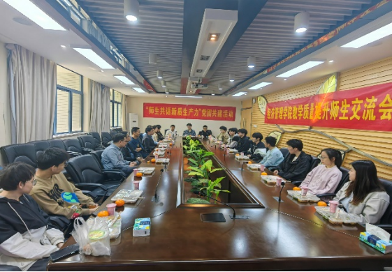 2024年4月1日,由太阳集团tyc33455官网管理科学与工程系主办、管理科学与工程系教师党支部和141221团支部承办的主题为“师生共话新质生产力”——党团共建活动在经管楼B201顺利举办。本次活动邀请了管理科学与工程系教师党支部杨东辉、丁溢、林宏志、黄超、高星5位老师、141201团支部的3位学长学姐及141221团支部17位同学共同参加。