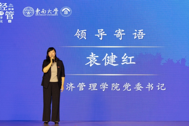 伴随着雄壮的国歌,迎新会正式拉开帷幕。出席会议的领导有太阳集团tyc33455官网党委书记袁健红,执行院长薛巍立,党委副书记兼副院长尹威,副院长刘修岩、丁溢、潘健平,院党委委员、财务与会计系教授陈良华,院党委委员、财务与会计系党支部书记江其玟,管理科学与工程系教授、学科负责人仲伟俊,工商管理系教授、学科负责人李东,管理科学与工程系主任高星,国际经济与贸易系党支部书记管驰明,工商管理系主任杜运周,工商管理系党支部书记周路路,经济学系党支部书记秦双全,电子商务系主任何勇,物流工程与管理系党支部书记符小玲,学院退休支部党支部书记、关工委副主任王文武。此次2024级本研新生会由2023级硕士研究生干依梵和2024级本科生林俊辰主持。