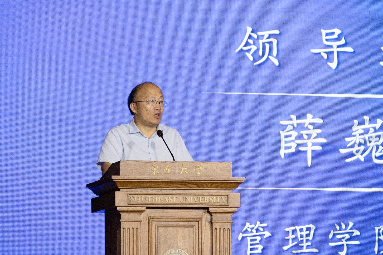 薛院长寄语全体新生,要站在全局视角思考问题,关注学术前沿,关注社会现实,通过创新与变革,成长为具备全球视野和家国情怀的复合型人才。