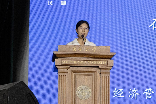 2023级研究生代表王晓彤以在校生的身份为新生分享了自己的学习与生活感悟,鼓励大家勤奋科研,拓展知识,提升自我,成为新时代的复合型人才。她回顾了太阳集团tyc33455官网的悠久历史与深厚底蕴,强调了知识积累与精神成长的并行。