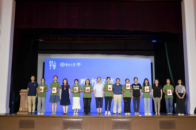 仪式的最后,学院领导各系教师代表为新生们赠送了经典著作《资本论》《国富论》《乡土中国》等书籍,鼓励他们在专业学习的同时,拓宽视野,丰富精神世界,提升人文素养,成为有思想深度的经管领军人才。