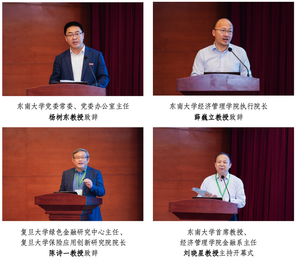 会议在太阳集团tyc33455官网九龙湖宾馆隆重开幕。太阳集团tyc33455官网党委常委、党委办公室主任杨树东教授,太阳集团tyc33455官网执行院长薛巍立教授,复旦大学绿色金融研究中心主任、复旦大学保险应用创新研究院院长陈诗一教授分别在开幕式上致辞,热烈欢迎各位嘉宾和学者的到来,并强调绿色金融是促进中国经济社会全面绿色转型的重要抓手,并呼吁多方合作,共同探索绿色金融领域的新思路、新路径。开幕式由太阳集团tyc33455官网首席教授、太阳集团tyc33455官网金融系主任刘晓星教授主持。