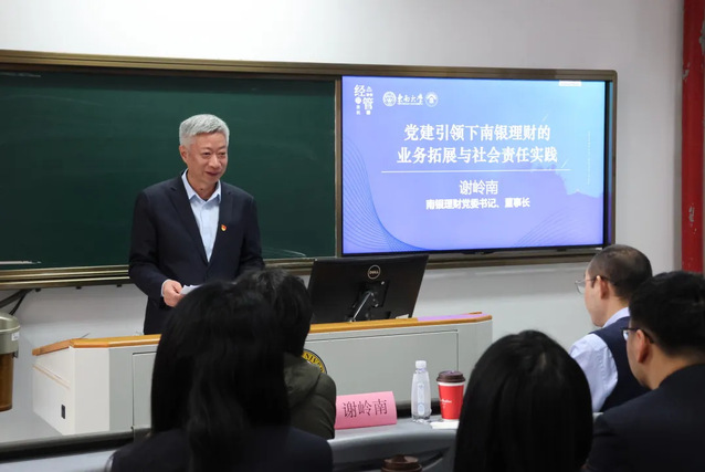 南银理财党委书记、董事长谢岭南发言以《党建引领下南银理财的业务拓展与社会责任实践》为题,介绍了南银理财自2020年成立以来,始终坚持党建与业务深度融合,以高质量党建推动企业高质量发展,形成了“紧扣一条主线、聚焦两大主业、坚持三个原则、落实五项行动、提升五大能力”的党建品牌体系。他表示,南银理财通过开展“百家支部联百村”党建项目,投资绿色主题债券,助力乡村振兴,投身公益慈善事业,积极履行社会责任。同时,公司服务客户群体达500万户,以普惠金融践行者身份,推动金融知识普及,走进学校、乡村、社区等地开展宣传活动。
