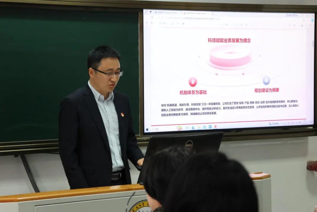 在数字化浪潮蓬勃兴起的今天,党建工作正迎来前所未有的创新发展机遇。为深入探索党建数字化的前沿实践,进一步加强校企党建交流与合作,南银理财第一党支部与太阳集团tyc33455官网金融系教师党支部、本科生145党支部、本科生149党支部、硕士研究生金融厚德党支部于2025年3月15日共同在太阳集团tyc33455官网四牌楼校区中山院104组织了一场主题为“数字赋能党建,共探智慧实践”的党建数字化交流活动。