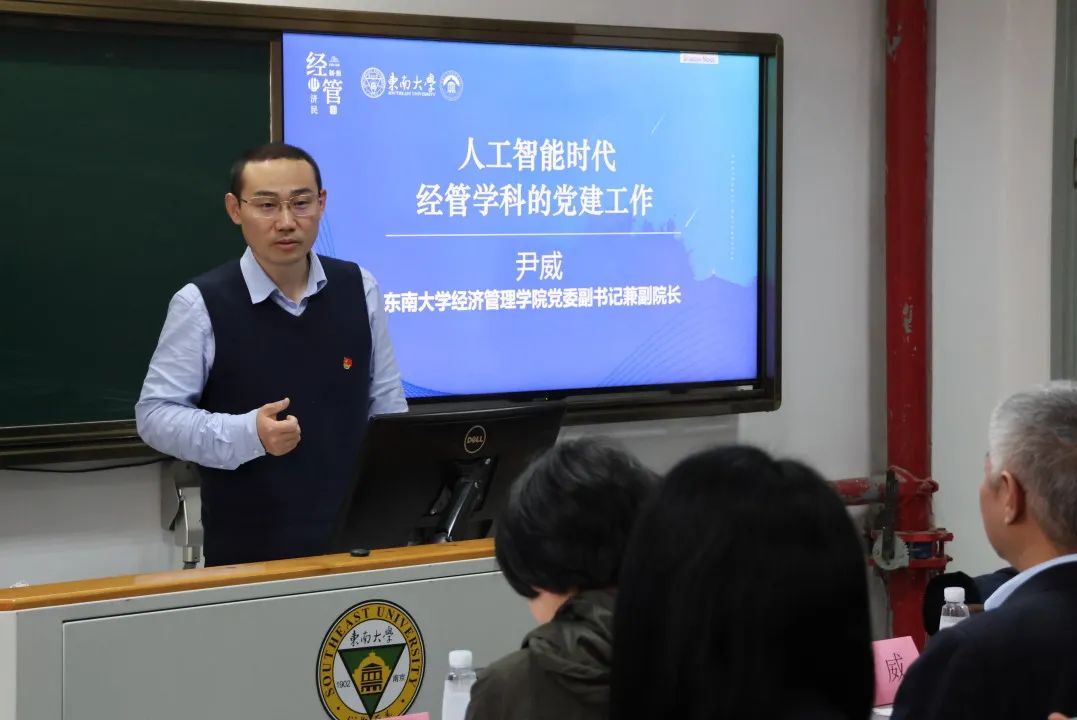 尹书记的发言内容丰富、见解深刻,为在场人员提供了关于人工智能时代经管学科党建工作的全新视角和思考方向,引发了热烈讨论与深入思考,也为后续交流环节奠定了坚实基础。