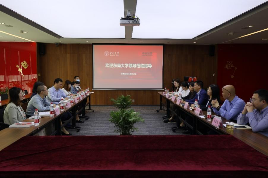 On the morning of May 25, Yuan Jianhong, Secretary of the Party Committee of the School of Economics and Management of Southeast University, and other officers went to CITIC Securities Jiangsu Branch to carry out the special action of "visiting enterprises to expand jobs and promote employment". He Yi, Deputy Secretary of the Party Committee and Deputy Dean of the School of Economics and Management, Pu Zhengning, Deputy Dean, Zheng Kairong and Wang Xiaotong, postgraduate counselors, Xie Siyuan, General Manager of CITIC Securities Jiangsu Branch, Zhang Cuilian, Deputy General Manager, Liu Yan, General Manager of Retail Client Department, Lu Xiaodong, General Manager of Wealth Client Department, Long Jia, General Manager of Institutional Client Department, Shen Guobin, General Manager of Operation Management Department, and Wang Yujuan, General Manager of Human Resources Department attended the event.
