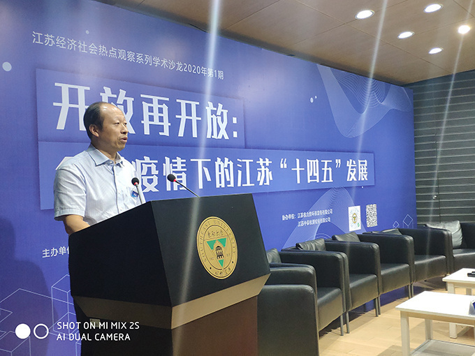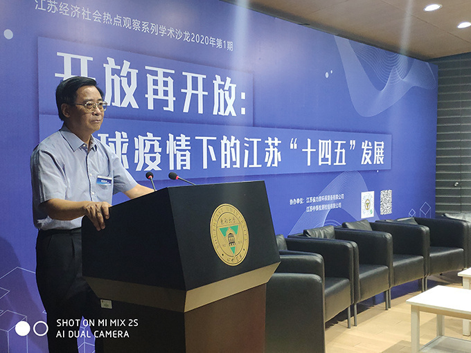 Vice Chairman Shang Qingfei, a member of the Party Group of Jiangsu Federation of Philosophical and Social Sciences said in his speech that Jiangsu is a large open province, with a foreign trade dependency of over 40%, and in the face of the huge impact and influence brought by the Covid-19, only with greater efforts to promote high-level reform and opening up again, and strengthen the deep integration with the world, can we turn "crisis" into "opportunity" and "open up again" from a new starting point, and accelerate the transformation from a large open province to a strong open province. It is hoped that at such a special moment this year, Jiangsu play a good advantage of the people and the wisdom of various think tanks to better plan Jiangsu's high-quality development of the "14th Five-Year Plan".
